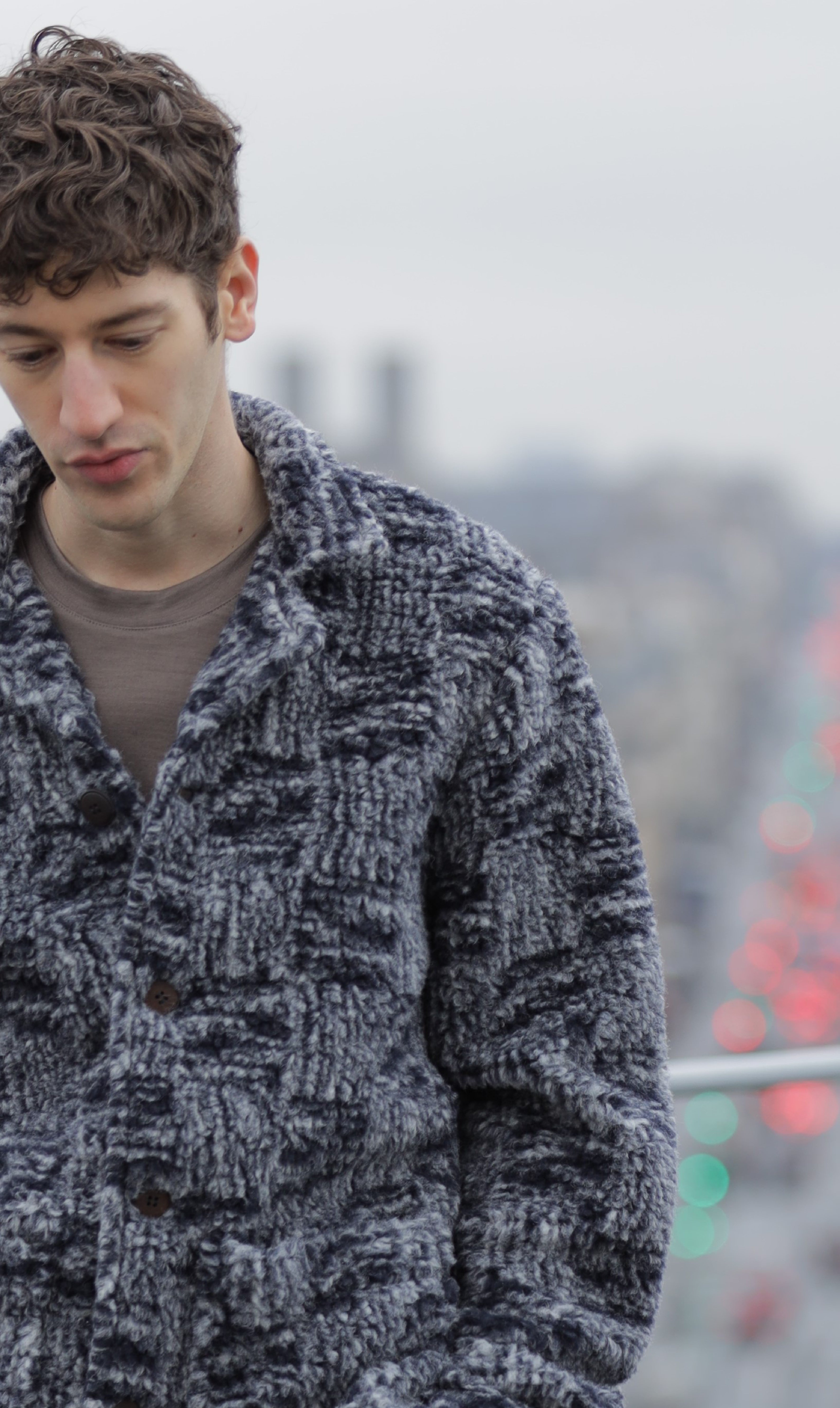 Veste en laine recyclée marine / marron