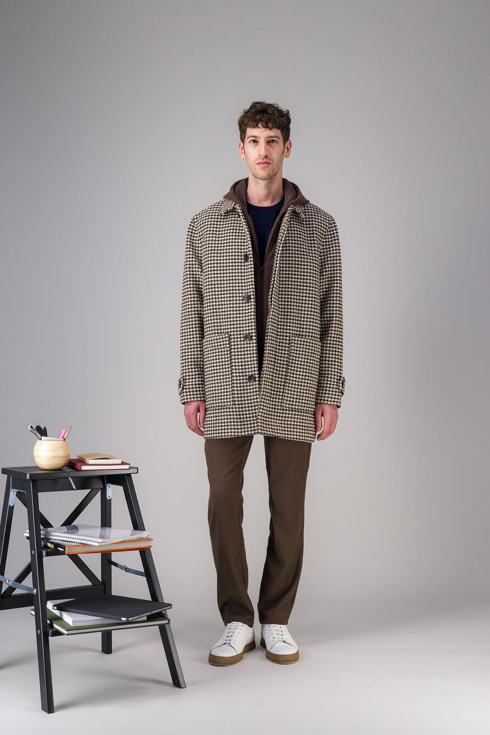 JAGVI. Rive Gauche complète le vestiaire de l'homme urbain contemporain avec ce manteau du vestiaire masculin intemporel, revisité dans un esprit moderne.