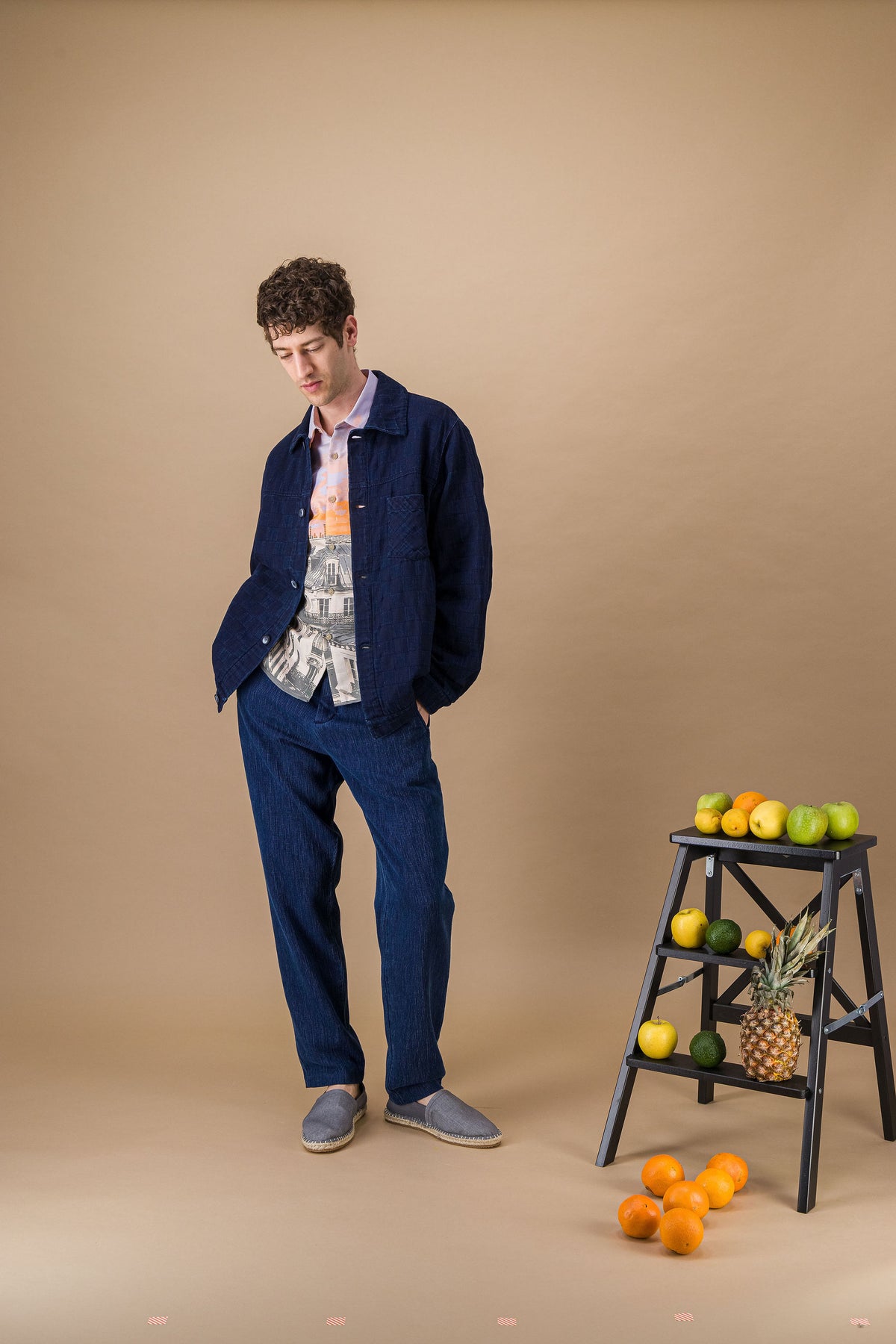Basé sur un jacquard français, avec une coupe ample. Cette pièce est parfaite pour le printemps. Chemise manches courtes.