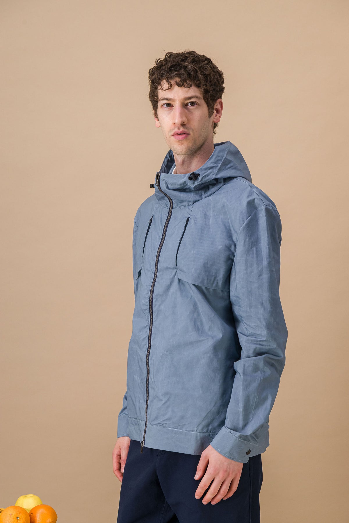 Fermeture zippée, 4 poches zippées (poitrines et latérales). Ce blouson de pluie en matière coton waxé imperméable bleu ciel fait son grand retour dans la garde robe masculine sur cette saison printemps 2026 . D'abord vêtement de sport, il s'est petit à petit adapté à un vestiaire plus urbain et quotidien.