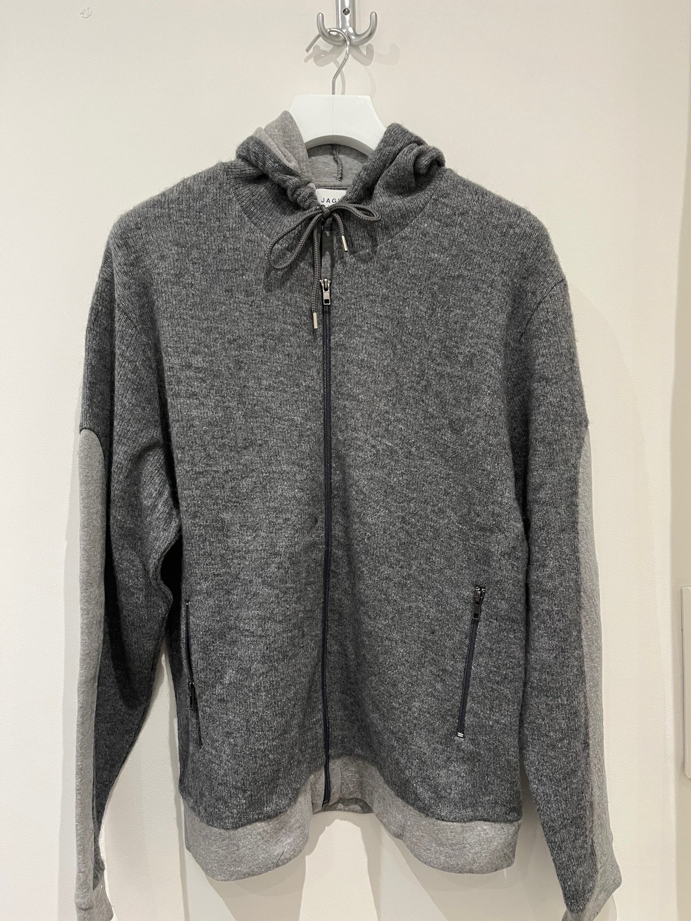 Sweat zippé laine recyclée capuche gris chiné