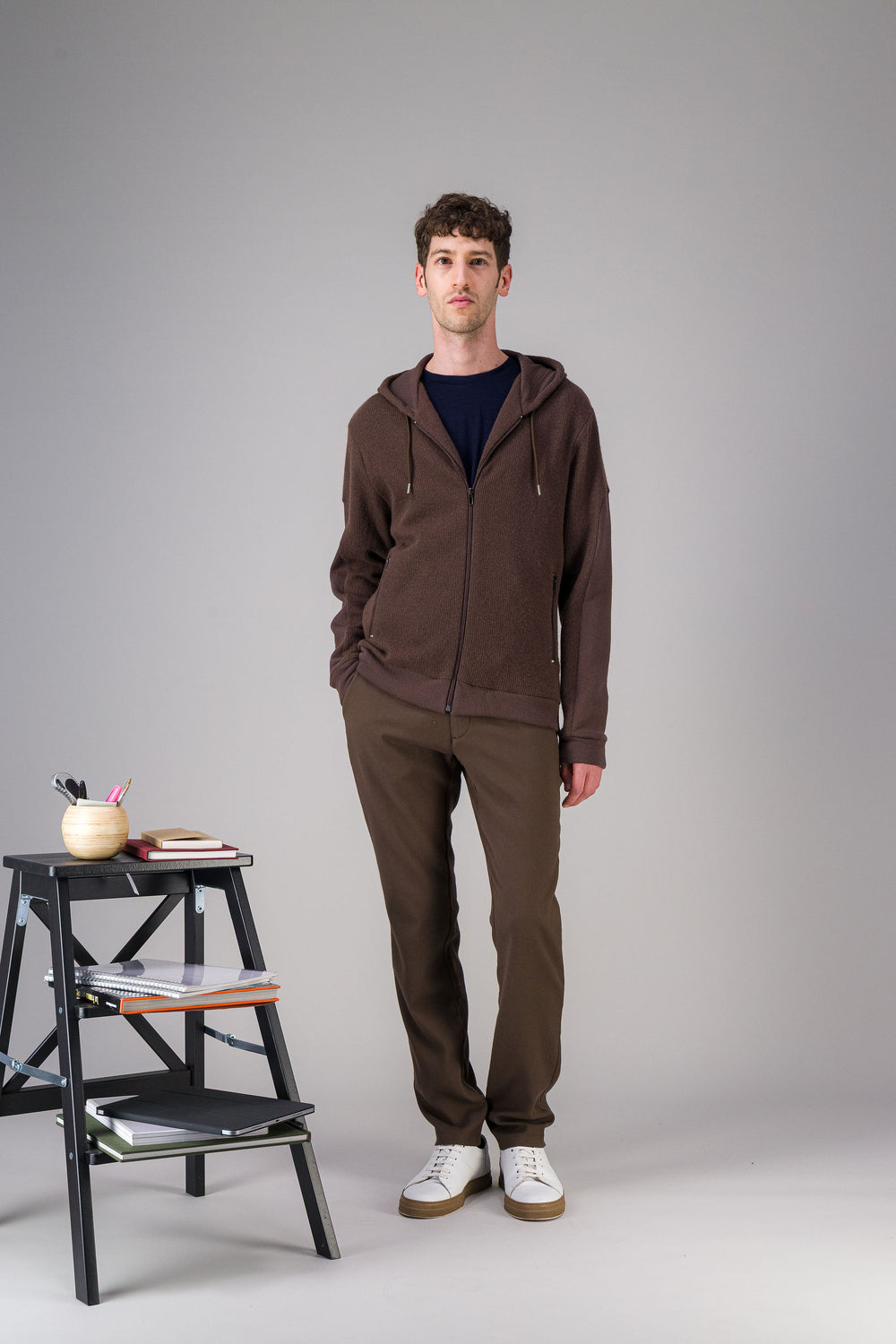 Since 2016, our shirts have been made with organic cotton as our t-shirts and sweaters. As precursor in men's circular fashion, our knits are made with recycled Merino wool as our technical jackets in recycled polyamide.